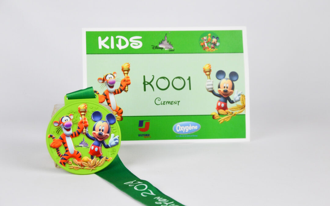Pour chaque participant, l’expérience ne serait pas complète sans une médaille Finisher, conçue pour immortaliser cet événement particulier. Réalisée en métal, la médaille arbore fièrement les symboles de cette course unique. Chaque distance est représentée par une médaille distincte, avec des couleurs spécifiques pour différencier les formats de course. Par exemple, les plus petits auront la chance de recevoir une médaille colorée qui correspond à leur course de 1 km, tandis que les coureurs plus aguerris pourront obtenir une médaille pour les distances plus longues, allant jusqu’à 21 km.