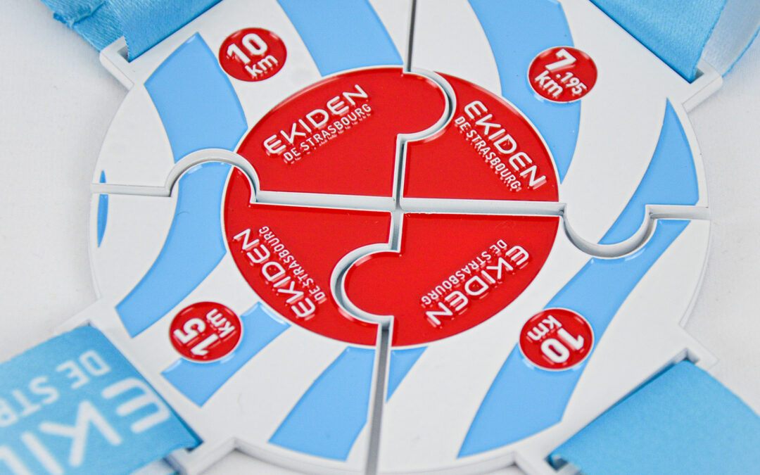La médaille Finisher de l’Ekiden de Strasbourg va bien au-delà d’être un simple souvenir. Elle est une représentation tangible de l’engagement individuel et de la collaboration au sein de l’équipe. Chaque détail de la médaille est soigneusement conçu pour refléter l’essence de cette épreuve unique. Personnalisée selon le graphisme et les éléments distinctifs de la course, la médaille devient un symbole puissant de réalisation et de persévérance collective.