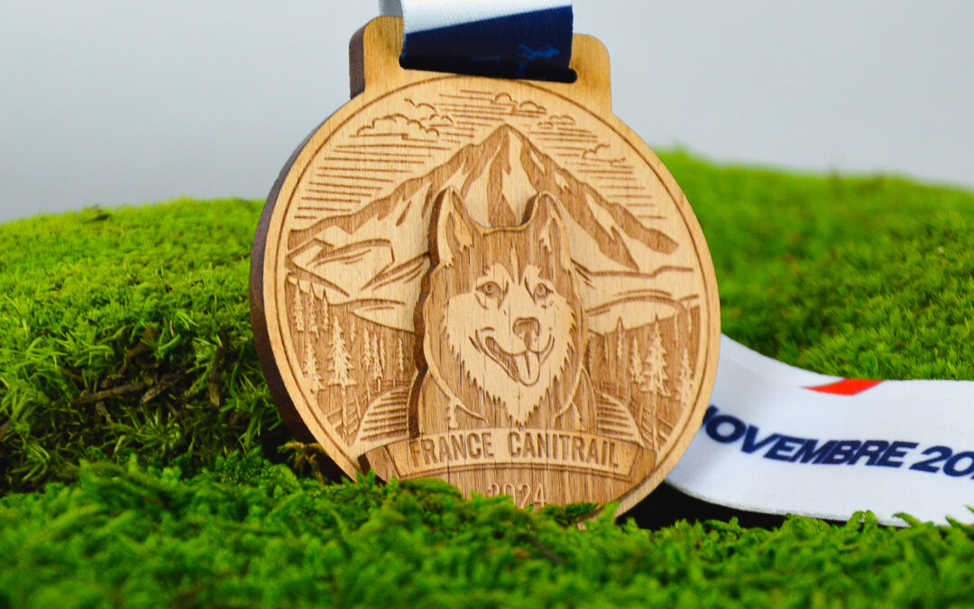 Pour honorer l’effort de chaque participant, une médaille Finisher en bois massif a été spécialement conçue. Réalisée en France à partir de bois local certifié Origine France Garantie, cette médaille reflète l’esprit authentique et respectueux de la nature qui anime le canitrail.