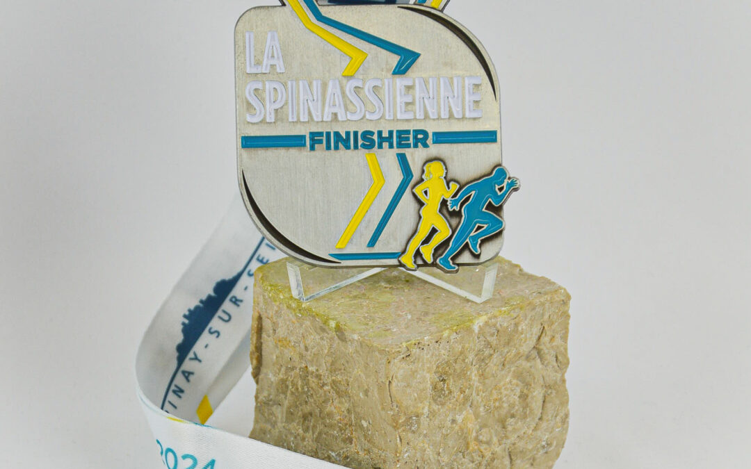 Quel que soit le parcours choisi, tous les finishers auront la fierté de repartir avec une médaille entièrement personnalisée. Réalisée en métal, elle reflète les valeurs de l’événement : engagement, sport, solidarité et fierté locale. Son design reprend fidèlement l’identité graphique de La Spinassienne, faisant de chaque médaille un souvenir durable.