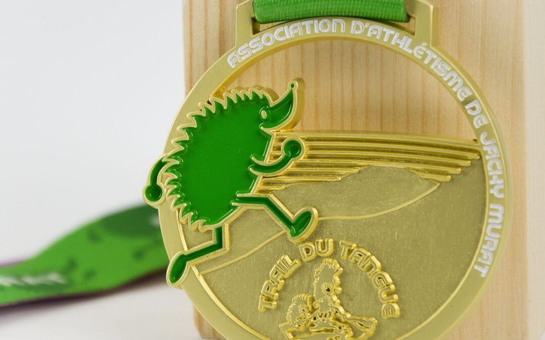 Chaque médaille est entièrement personnalisée, à commencer par le design, soigneusement travaillé pour souligner les spécificités de la course. Le logo du Tangue, finement gravé, donne une personnalité forte à cet objet symbolique. L’ensemble est sublimé par un ruban personnalisé, reprenant les couleurs et l’identité visuelle de l’événement, pour en faire une médaille à la fois esthétique et mémorable.