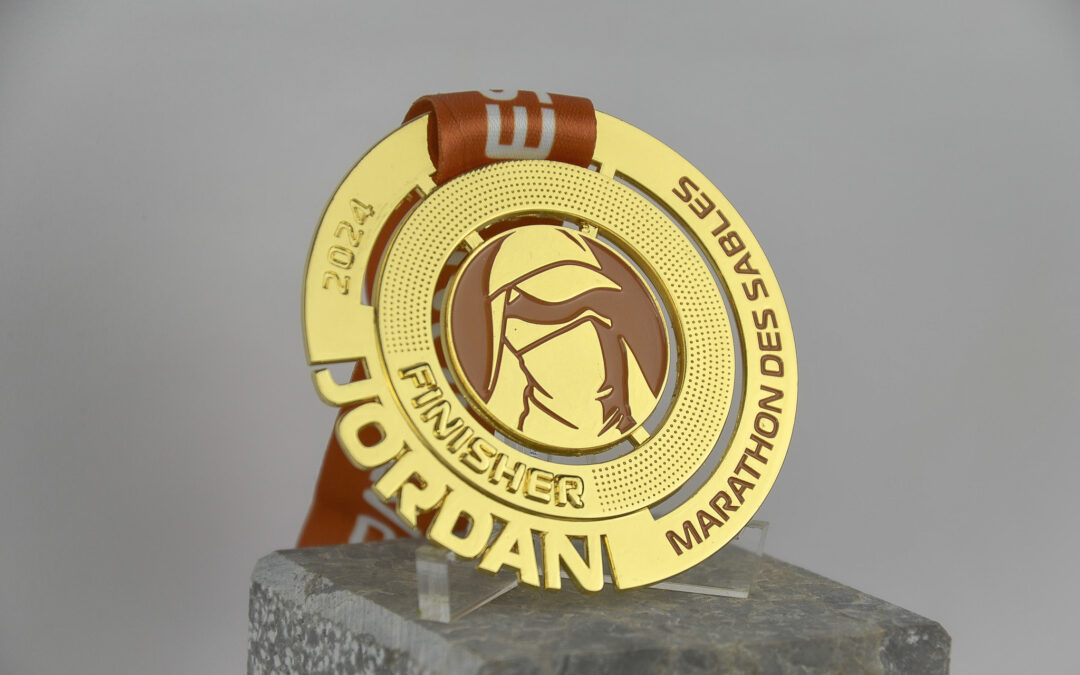 Ainsi, la médaille finisher du Half Marathon des Sables Jordanie 2024 est une œuvre d’art en soi, un symbole d’accomplissement et un souvenir éternel de cette aventure exceptionnelle au Wadi Rum. Elle accompagnera fièrement les participants bien après la course, leur rappelant à chaque regard leur exploit et la magie du désert qui les a accueillis.
