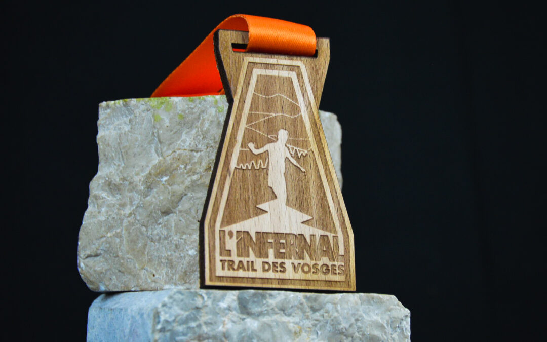 L’Infernal Trail des Vosges, dans sa seizième édition, se présente comme la plus belle aventure humaine et sportive au cœur de cette magnifique région. Au-delà de l’épuisement et des défis, chaque finisher se voit récompensé d’une médaille exceptionnelle, une œuvre d’art en bois gravé, un témoignage authentique de cette aventure vosgienne.