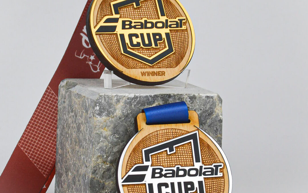 La médaille personnalisée de la Babolat Cup est plus qu’un simple trophée, c’est un symbole de l’effort, de la persévérance et de la passion de chaque jeune joueur. Réalisée sur une base en bois gravé, elle se distingue par son design élégant et intemporel. Chaque médaille est ornée d’une plaquette gravée en or, argent ou bronze, selon le classement des participants sur le podium.