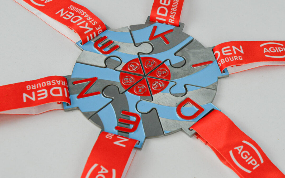 À la hauteur de l’événement, la médaille finisher de l’Ekiden de Strasbourg a été conçue de manière innovante et symbolique.