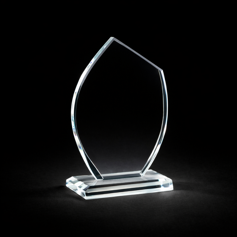 Glastrophäe mit der Möglichkeit, die Trophäe mit Lasergravur zu Personalisieren (logo und Texte)