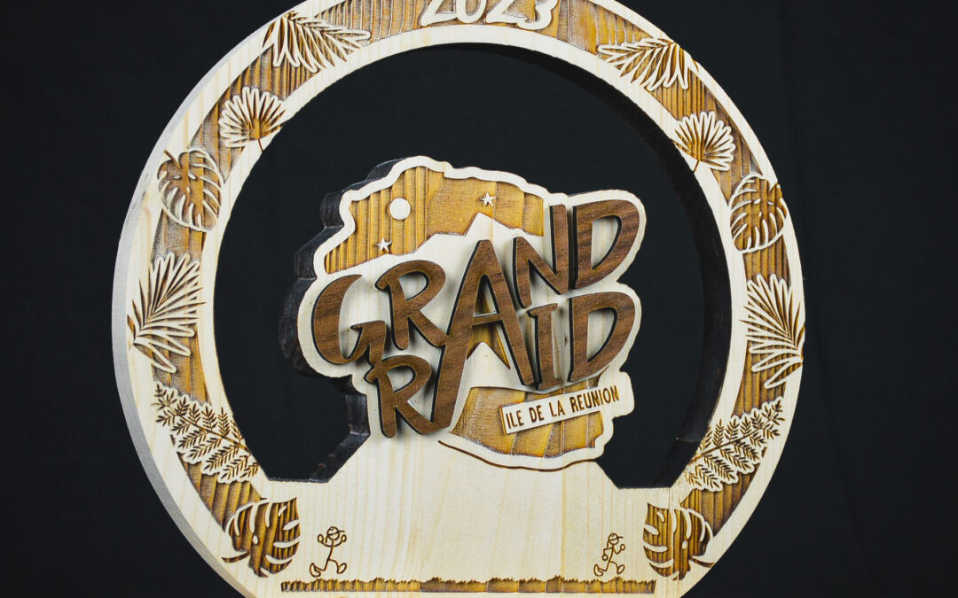 Au cœur de cet événement emblématique se trouve le Trophée du Grand Raid, une œuvre d’art qui capture l’esprit et la difficulté de cette aventure épique. Réalisé sur mesure, ce trophée incarne la charte graphique distinctive de la Diagonale des Fous. Grâce à une technique experte de découpe et de gravure laser sur bois, le trophée reproduit fidèlement les éléments visuels qui font de cette course un événement exceptionnel. Chaque détail du trophée du Grand Raid raconte l’histoire de la Diagonale des Fous, des cimes vertigineuses aux vallées profondes, de la ferveur des coureurs aux paysages à couper le souffle. Ce trophée n’est pas simplement une récompense, c’est un rappel tangible des défis surmontés, des sommets atteints, et de l’esprit indomptable qui caractérise cette course extraordinaire. En tant que symbole d’endurance et de conquête, le Trophée du Grand Raid de la Réunion demeure une pièce maîtresse, non seulement pour les lauréats, mais pour tous ceux qui aspirent à relever des défis au-delà des limites conventionnelles.