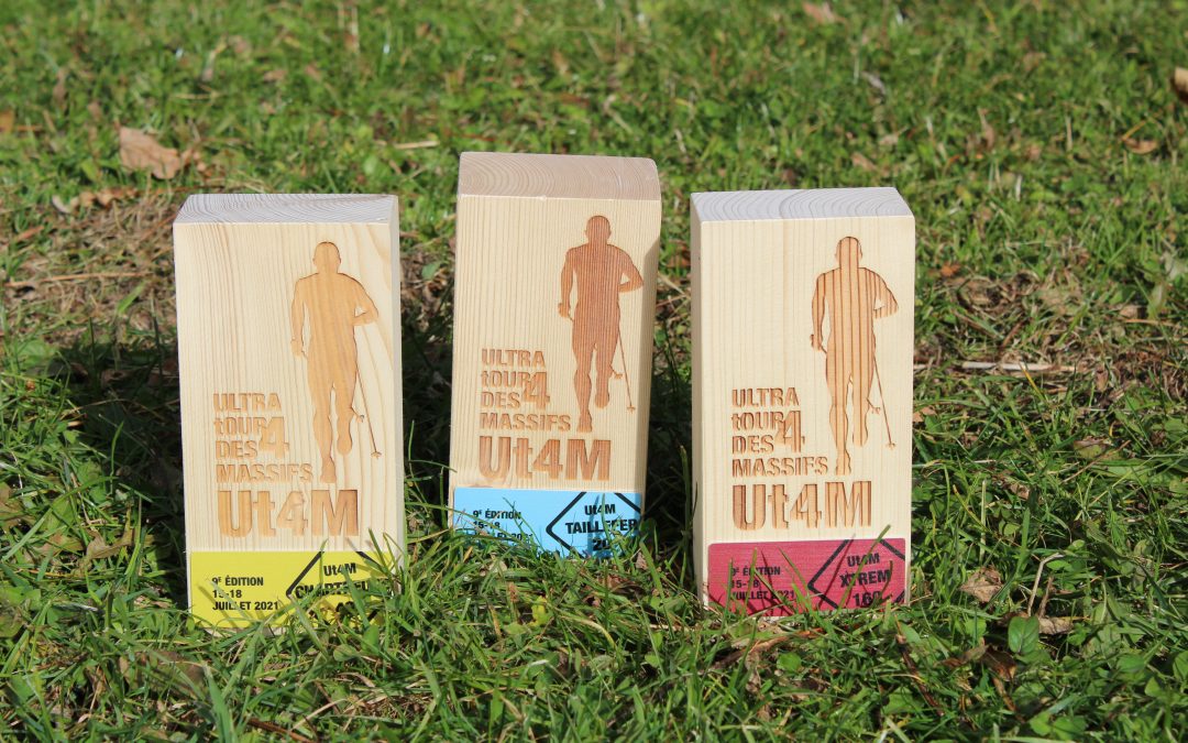A l’occasion de l’édition de l’UT4M 2022, les trophées podium ont été réalisés en gravure sur bois. A partir d’un matériaux noble qu’est le bois, la personnalisation est effectuée grâce à la gravure laser. Extrêmement précise, la gravure permet de mettre en évidence toutes les parties du logo.